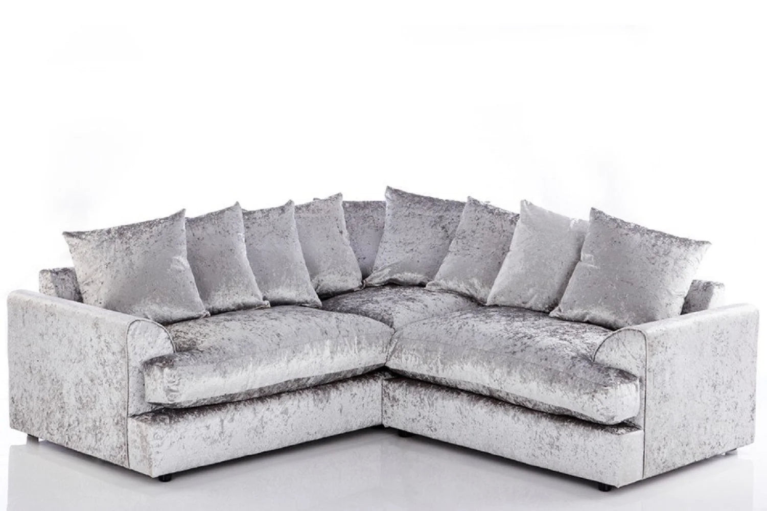 The corner sofa design is a great centrepiece for any home or living room. The plush cushions and curved arm style allow you to really relax and entertain. This sofa is available in a range of great colours to help you easily find the best match for your home's decor. This large sofa with scatter back cushions is upholstered in a lovely soft, hardwearing, and comfortable crushed velvet fabric.